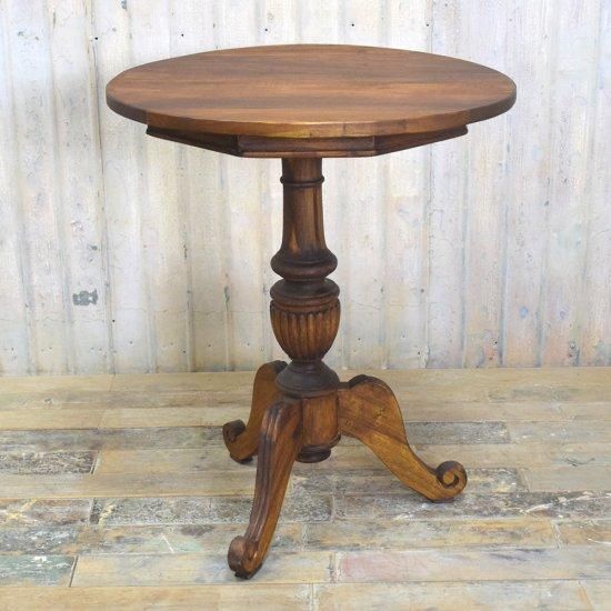 英国クラシック アールデコ調のフラワーテーブルです。 支柱部分と脚は美しいカービングが入っておりデコラディブに仕上がっています。 チーク独特のキメ細かな木目がより一層の高級感を演出しています。