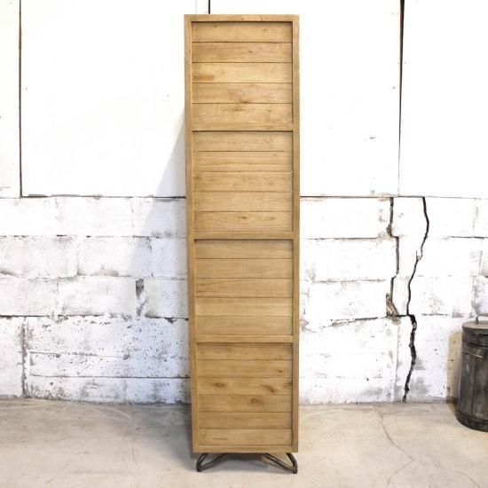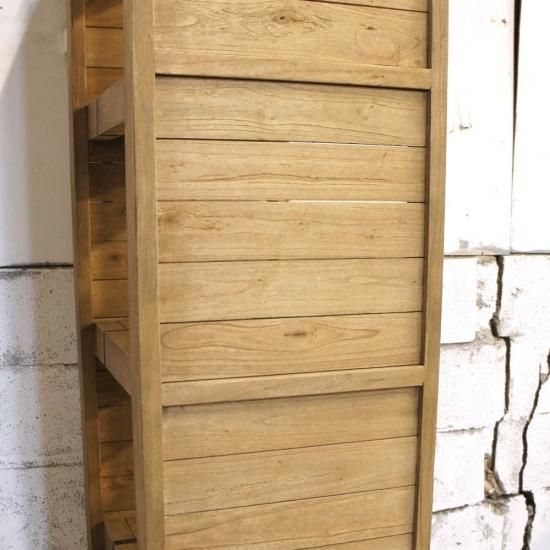 上段にオープンラック3段に下段に引出しのボックスが二つある一列のシェルフです。