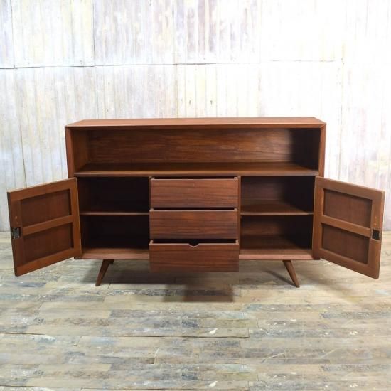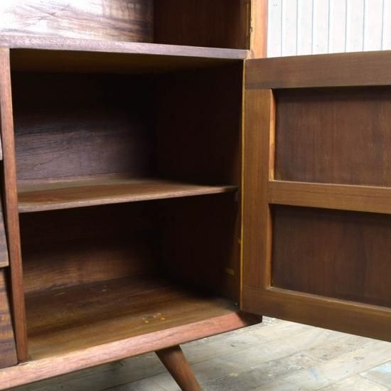 北欧テイストのハの字に伸びたジェンキー脚と取っ手の無いスッキリとした引出が魅力のサイドボードです。