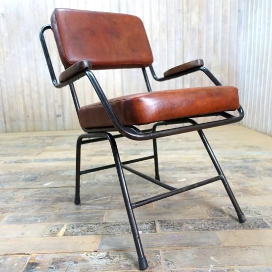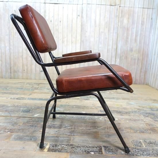 本革レザー、オールドチーク、アイアンの組み合わせがベストバランスなサイドチェアです。