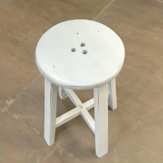 シャビーシックなインテリアにぴったりなアンティークチーク ホワイトスツール。