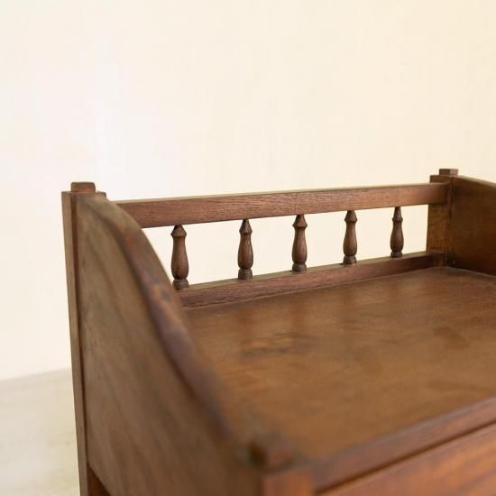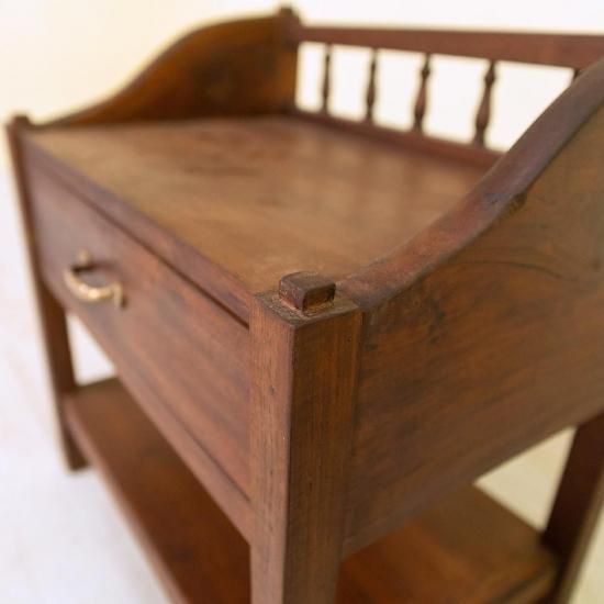 小さいながら職人の技術が各所に盛り込まれたナイトテーブルです。